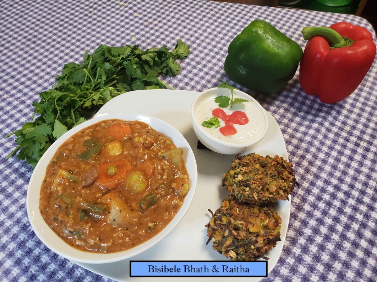 - Method: Dry roast ingredients, powder using a blender and set asideMethod for Bisibele bhath:Soak and extract tamarind water of steamed tamarind and set aside.Mix Daal + Grains + Steamed Veggies + Spice powder + Tamarind extract and bring to a boilOptional: To give a nice bright red color add 2-4 TBS of Tomato PasteSeason with hing, dry roasted curry leaves, mustard seeds.Serve with raita.Serve with flame roasted happla over an open flame!ENJOY!