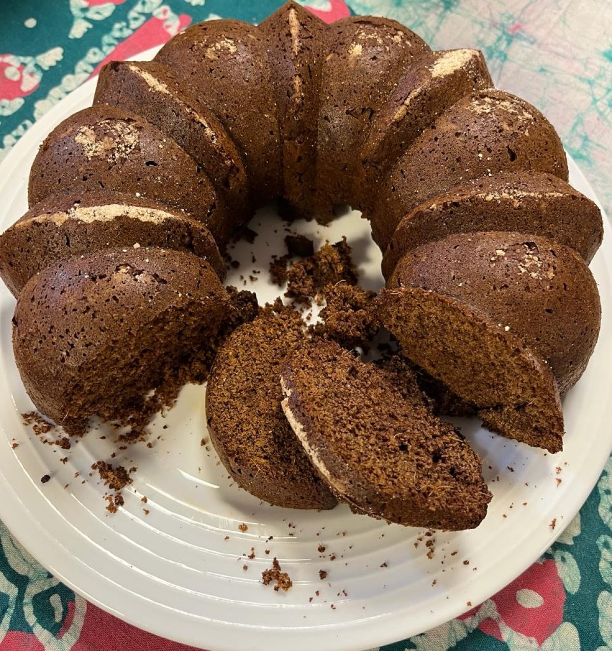 - Pour into a silicone bundt pan or lightly dusted regular bundt pan or parchment lined 9 x 9 baking dish.