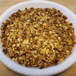 3. Combine the fruit mixture and layer in a 8X8 glass, corning or ceramic baking pan or a round pie dish. Spread oat crumble mixtute evenly over the fruit mixture.