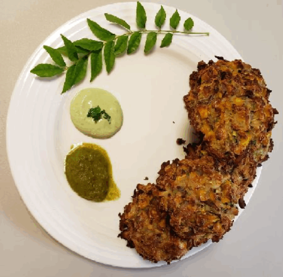 Zucchini Corn Spinach Fritters/Bhajiyas/Pakoras