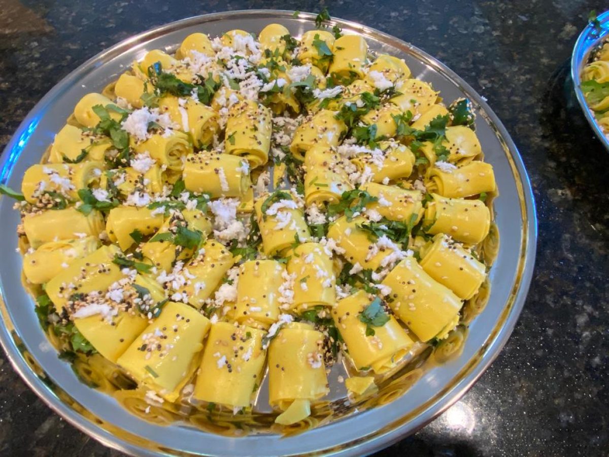 Khandvi can also be made vegan using fresh lemon to replace the yogurt.