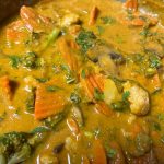 - Heat a deep pan, add garlic, Carrot, mushroom, cauliflower, potato, green beans and saute for a minute.