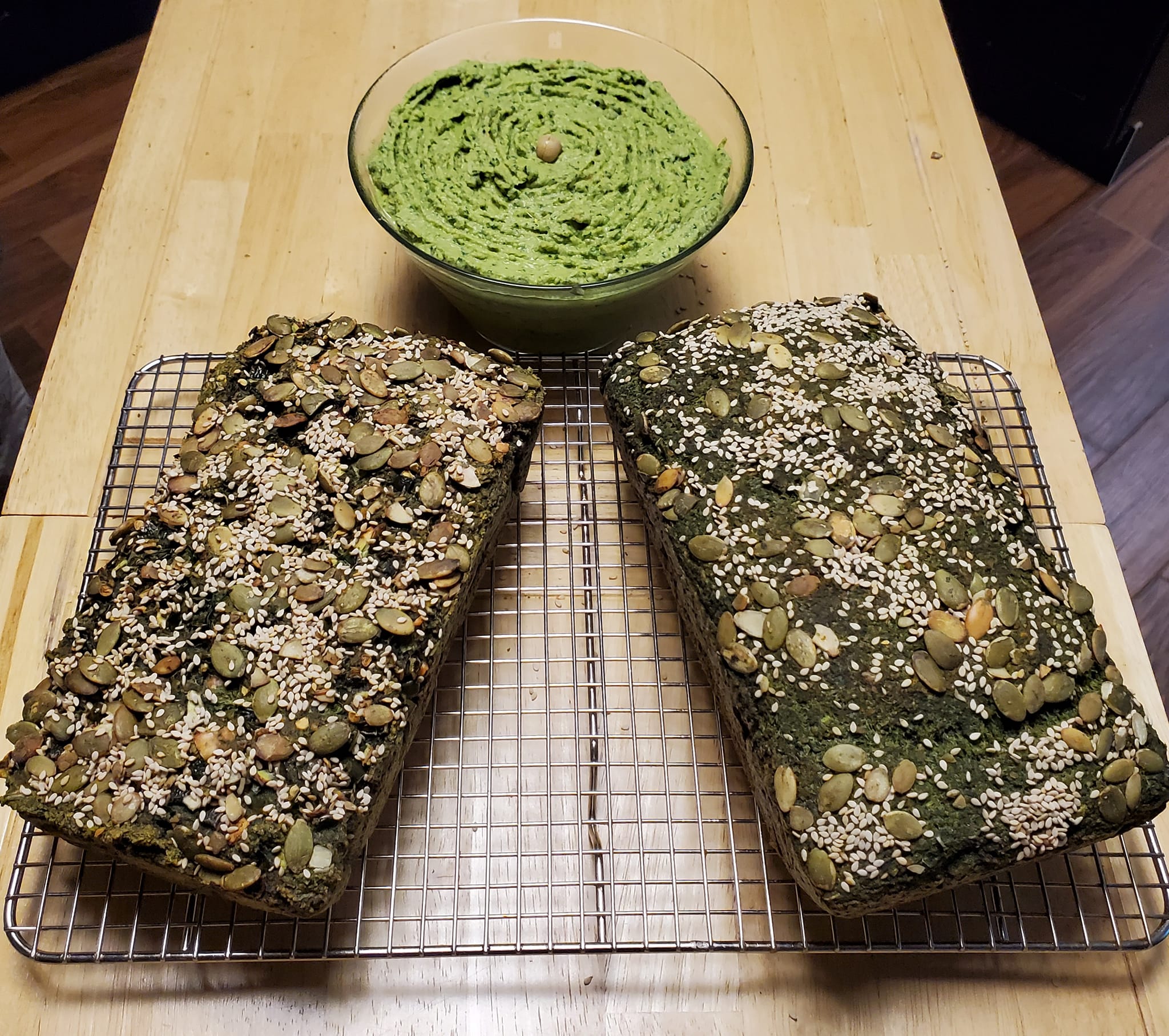 - Transfer into a loaf pan lined with parchment paper