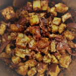 Sprinkle all the spices over the cooked vegetables. Stir gently to coat spices evenly. Eggplant pieces should retain their shape but ensure that they are cooked.