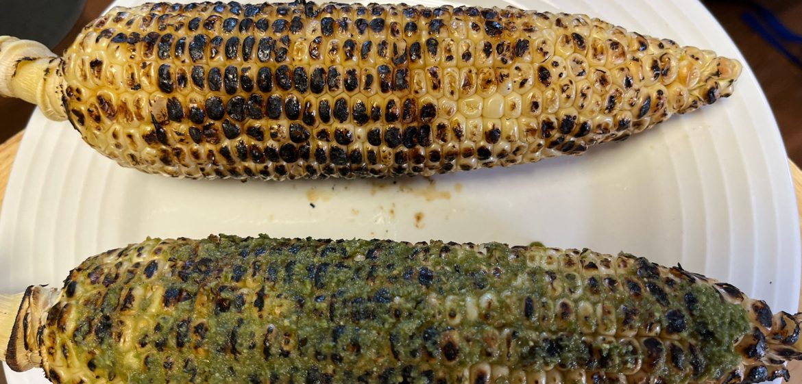 ROASTED CORN – BHUTTA Grill corn on a grill or gas stove until well roasted. Smear green chutney on each and enjoy!
